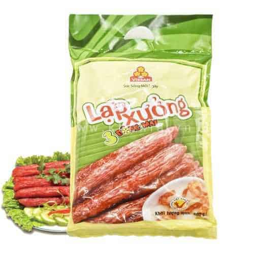 Khi mê món lạp xưởng này rồi mà muốn an tâm vệ sinh thực phẩm thì anh chị có thể chọn lạp xưởng vissan. Lạp xưởng vissan bán trong siêu thị thường là lạp xưởng khô. Lạp xưởng khô thì ăn hơi cứng và nhiều mỡ hơn so với lạp xưởng tươi.