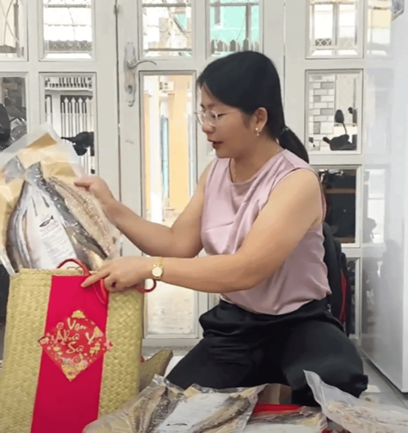 Ngày 7/1 Út Loan nhập hơn 50kg khô cá dứa 3 nắng để làm giỏ quà gửi cho các anh chị đi biếu tết. Út Loan có giỏ quà mang đi xa được, để điều kiện thường 2 tuần nên anh chị yên tâm khi mua giỏ quà về quê nhé.